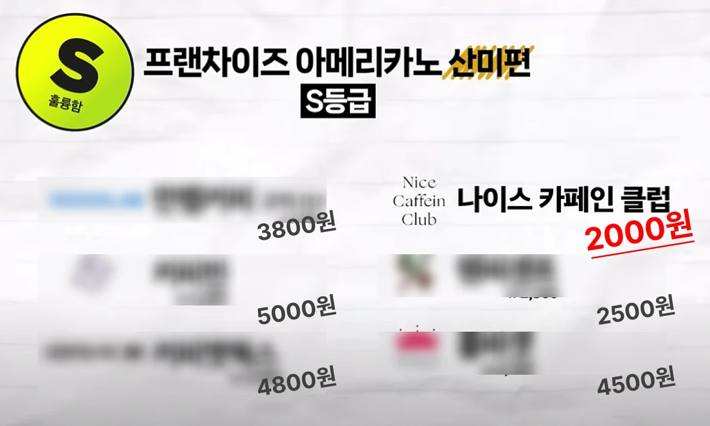 20만 유명 커피 유튜버의 블라인드 테스트에서 최고 S등급으로 선정되며